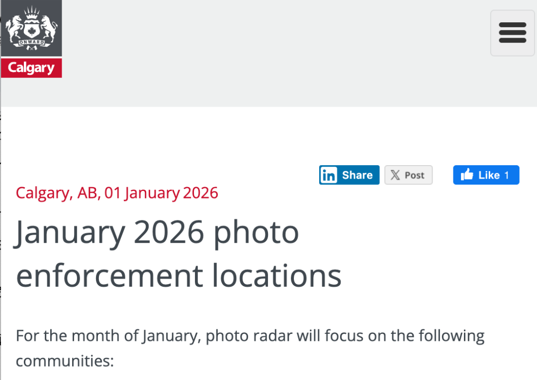 总的来说,2026年1月份,卡尔加里市民和来访司机务必注意:社区道路、施工区和重点路口都是执法重点。超速不仅可能面临罚款,更可能触发法庭传票,影响记录和保险。
