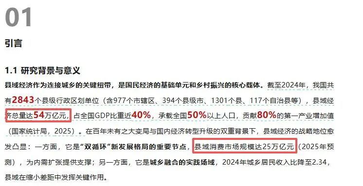 这个时候一众品牌才后知后觉的发现,县城乃至乡镇的的消费体量,并不比大城市差。在2024年县域经济总量就达到了54万亿,2025年县域市场规模甚至还可能达到25万亿。