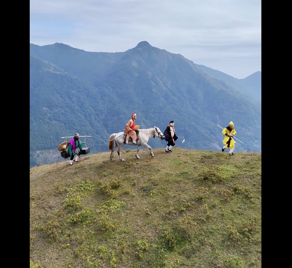 直播的内容很简单,找四位主播,打扮成86版《西游记》里面师徒四人的经典造型,然后在乡村城镇中漫步,在深山老林里跋涉,去一个又一个不同的地方“冒险”,整个过程都在网上直播,然后按送礼大哥们的要求,延长旅行的路程,或者加入新的演员和剧情。