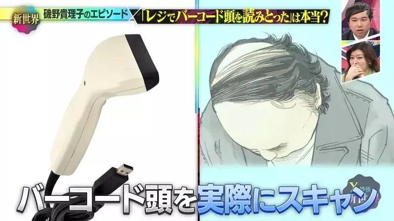 日本61岁女演员矶野贵理子,曾分享过这样的个人经历:她以前在便利店打工的时候,碰上一位秃头的顾客在柜台前弯腰,结果扫码枪不偏不倚扫到客人的秃头,结果竟然“嘀”的一声,扫出了“10日元”的价格。
