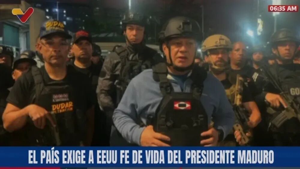 街头视频显示,民兵与正规军情绪稳定,关键设施由武装力量严密控守。内政部长迪奥斯达多·卡韦略身穿防弹背心在加拉加斯街头呼吁民众保持冷静。
