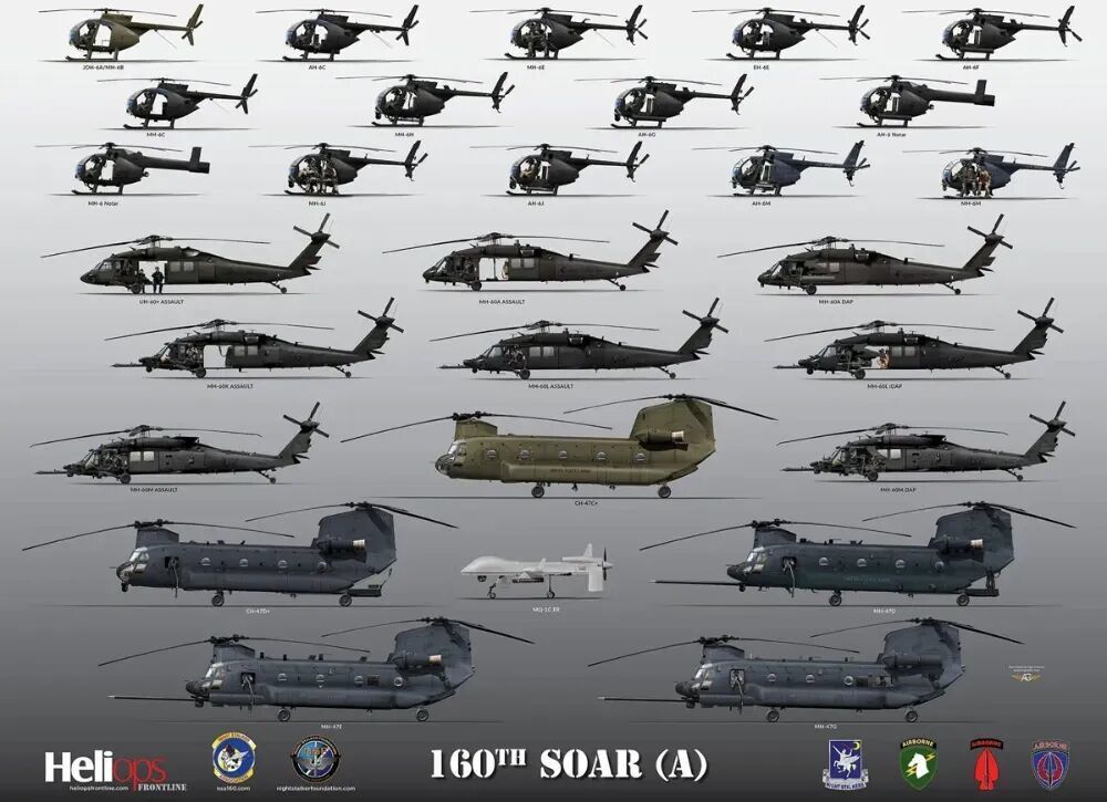 这支全球唯一专为夜间低空渗透设计的航空特战部队,自1981年组建以来,一直是美军特种作战体系中的“空中尖刀”,从格林纳达到巴拿马,从阿富汗到伊拉克,无役不与。拥有各种大(CH-47)、中(UH-60)、小(MH-6)系列直升机型。