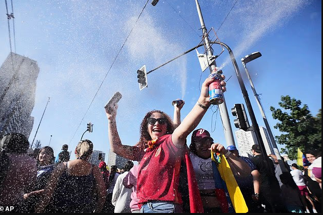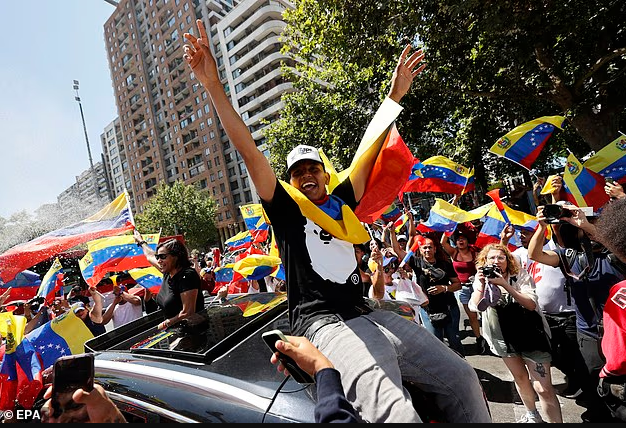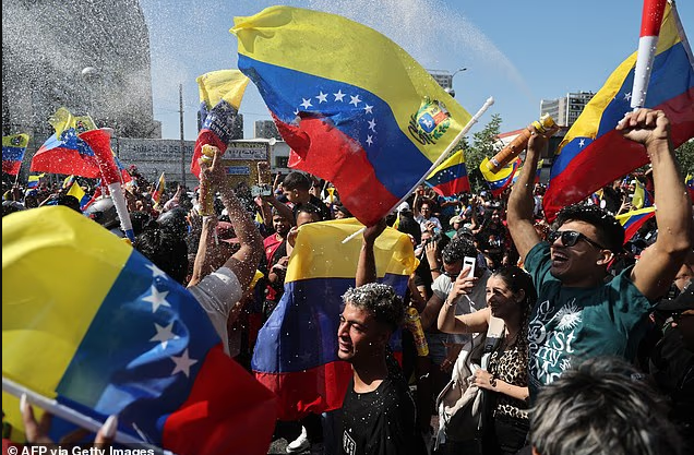 一名在智利参加庆祝活动的委内瑞拉人表示:“我来到这里是为了庆祝独C政权的倒台,庆祝马杜罗的贩毒体系被摧毁,尼古拉斯·马杜罗和迪奥斯达多·卡韦略的统治结束了。