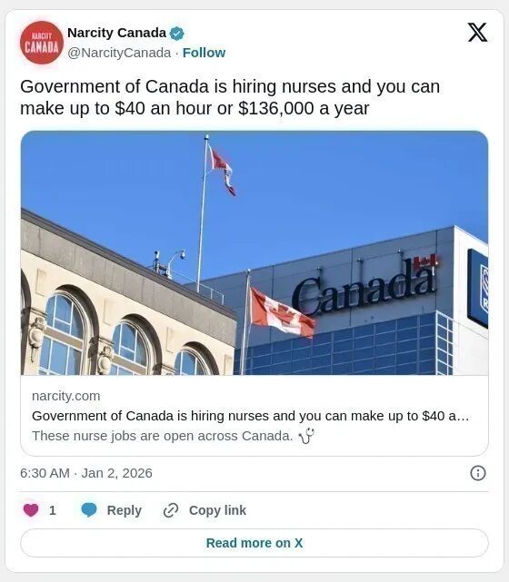 加拿大各地政府部门现正招聘护士职位,包括注册护士、执业护士、社区健康护士及初级护理护士等。相关岗位薪资可高达每小时 40 加元或年薪 136,000 加元。招聘单位及岗位