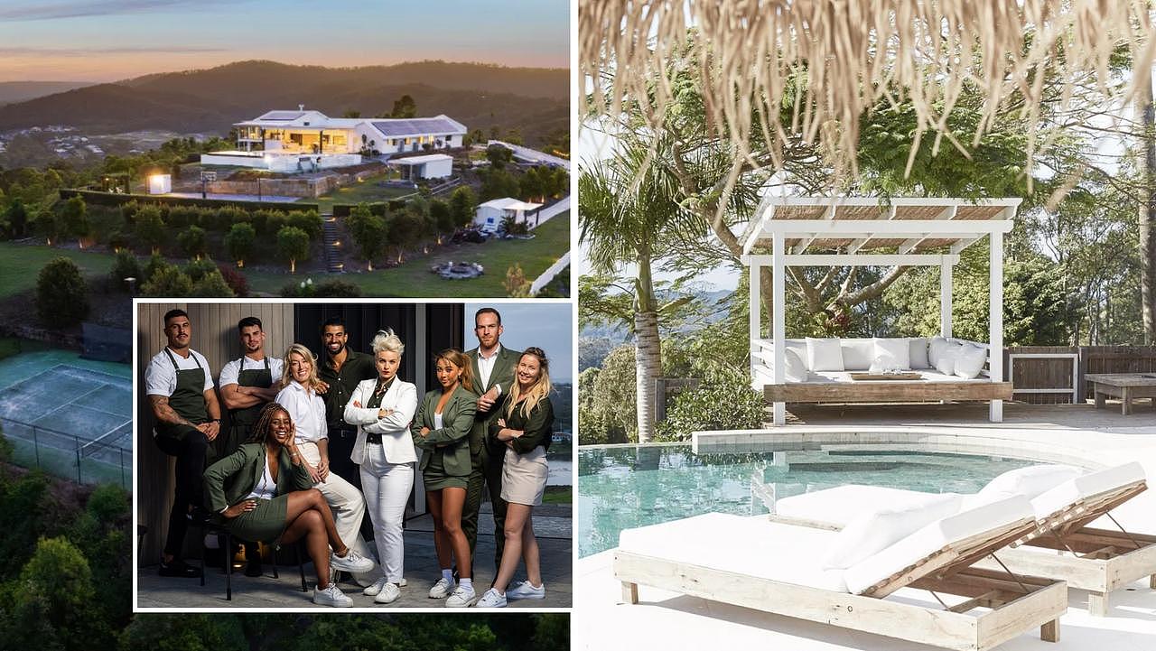 豪宅租赁公司 Luxico 的员工出演了《十亿美金游乐场》(中间),而该公司在黄金海岸(左)和 Byron Bay(右)的部分房源每晚租金高达数千澳币。图片:提供/Luxico。