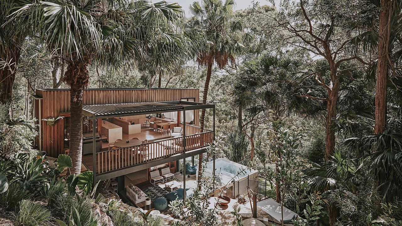 位于悉尼 Church Point 的 Palm Pavilion 雨林度假屋,2026年1月入住三晚的费用为3928澳币。图片:提供/Airbnb。