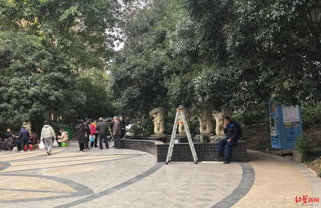 该小区不仅存在“双保安”,客服、保洁、工程人员等也都是“双份”的。近日,红星新闻记者在小区里看到,客服中心里面坐着原物业的两人,外面放包裹处坐着另一家的;在小区中庭,新来的物业工程人员刚去业主家换了灯泡,无聊地坐在花台边……