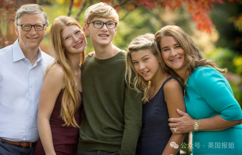比尔盖茨、大女儿詹妮弗、儿子罗里、菲比、前妻梅琳达