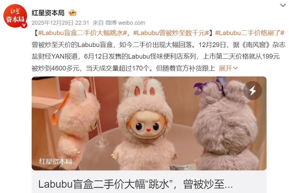前两天,# Labubu二手价格崩了 # 冲上了热搜,这事儿有多魔幻呢?