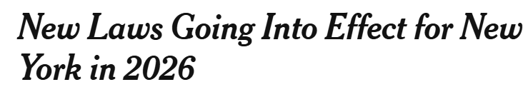 随着日历翻到2026年,纽约州有一系列新法律正式生效,内容涵盖癌症患者福利、幼儿家长支持、最低工资上调等方面。同时,还有一些引人关注的变化,包括儿童虐待举报制度的调整(旨在防止恶意虚假举报),以及关于谁可以代表逝者进行器官捐献的新规定。纽约时报报道截图
