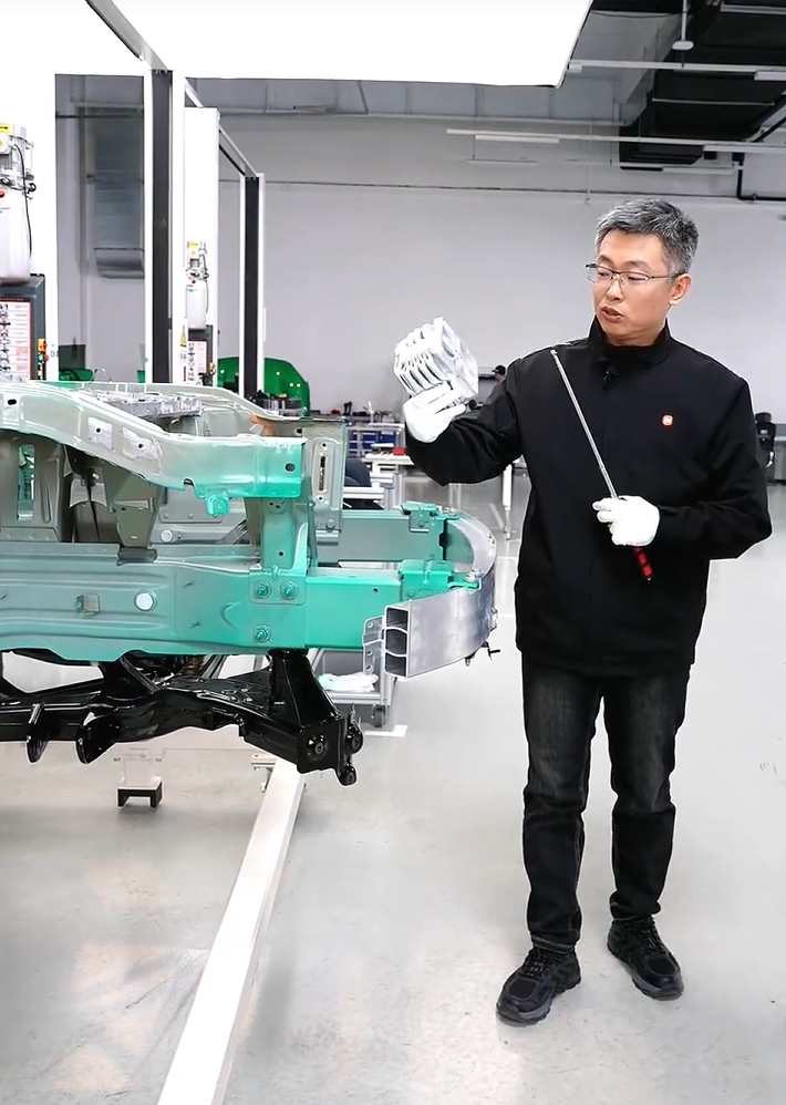 还有,当时我们说大压铸的维修成本高,雷总还专门拉着强哥指出了 YU7 那么长的一个可替换后吸能盒。。。