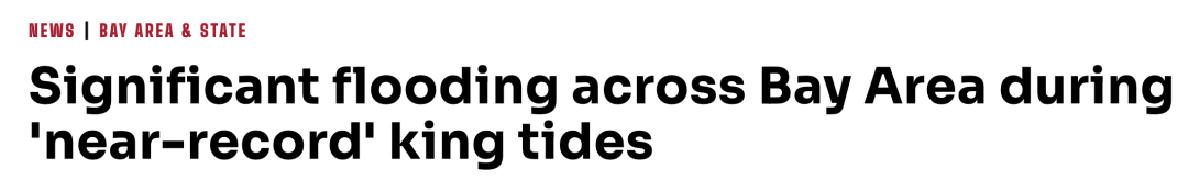 近期受罕见的King Tides、风暴潮和持续性降雨叠加影响,加州旧金山湾区多地出现大范围洪水,部分社区、道路及商业区泡水甚至交通瘫痪。 国家气象局已多次发布洪水预警与海岸洪水警报,提醒居民加强防范、避开积水路段。新闻报道标题截图