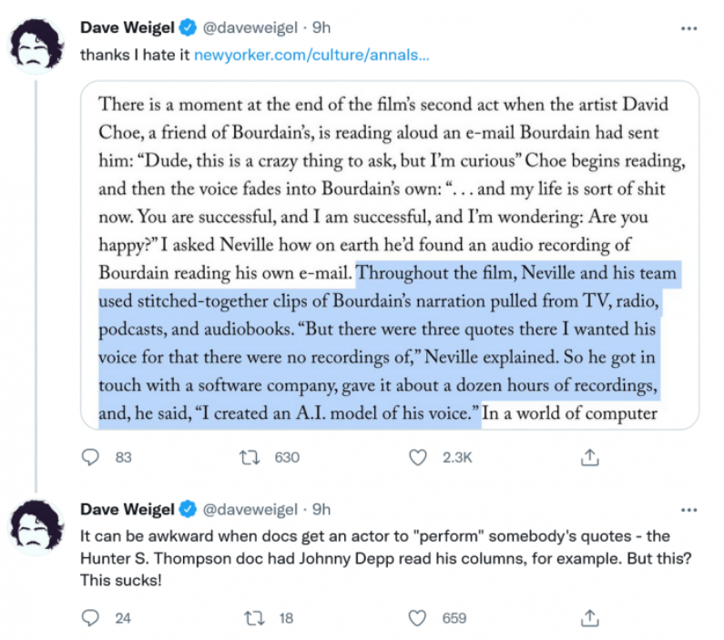 带来的连锁反应是,观众们开始对整部影片内容产生怀疑,因为大家无从判断是否还有更多声音或画面来源于AI,而非真实存在。
