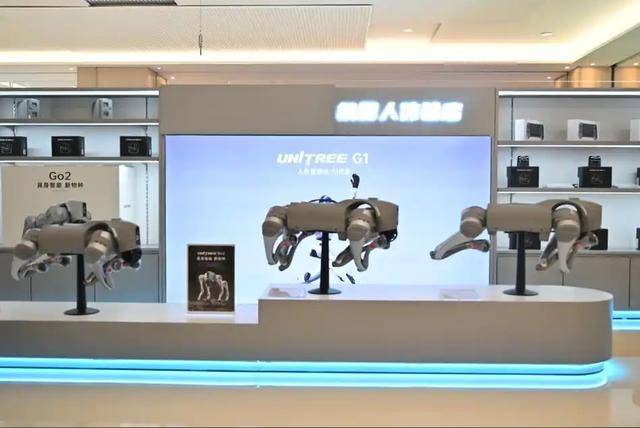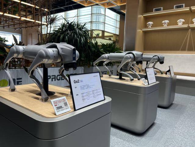 所以宇树早在7月就在郑州开了体验店,这次和京东合作开店,逻辑也是一样的。店里专门设了沉浸式互动区,消费者能现场上手体验各款产品,体验满意了直接扫码下单,想自提或者让京东送货上门都行。