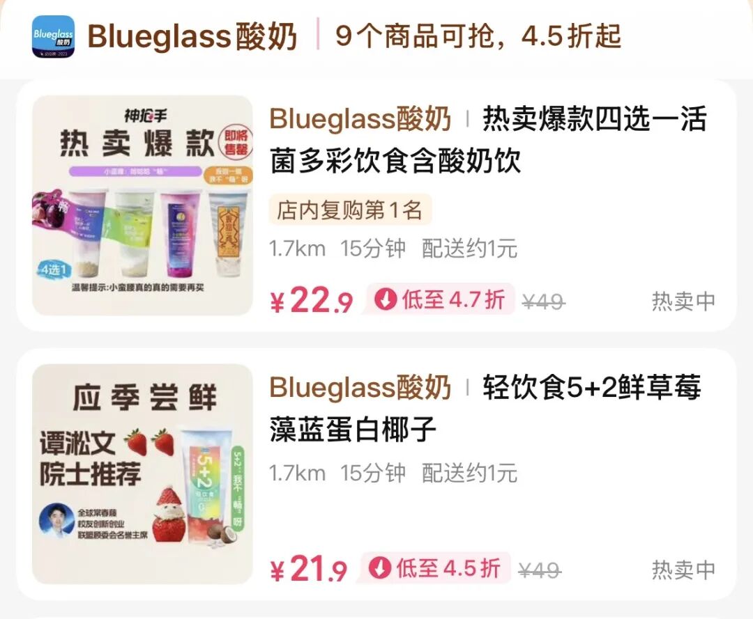 酸奶的中产神话,正在加速终结。曾被称为“酸奶界爱马仕”的Blueglass,价格腰斩。原始标价49元一杯的酸奶饮,如今打出了“低至4.5折”的促销标语。Blueglass的降价,不过是行业残酷内卷的冰山一角。