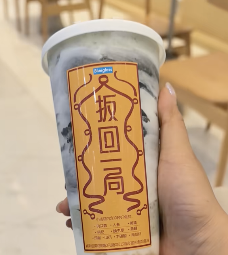 封盖后,要插上一根大大的粗吸管,再配上一张长收据,收据上写满了成分配料或创业历程;