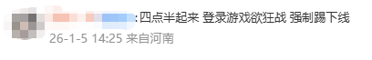 “四点半睡不着想起来爽两把,结果被强制踢下线了?”