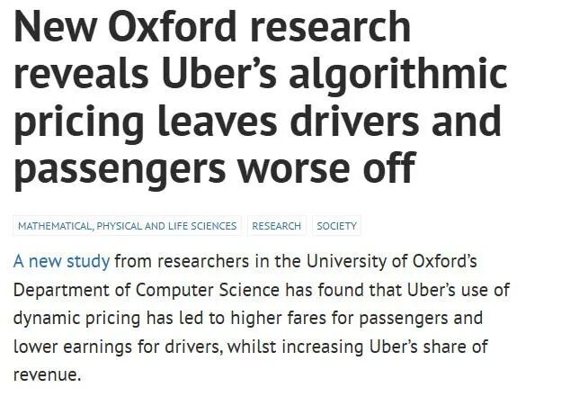 Uber在2023年之后引入了动态定价算法,每次打车花多少钱并不透明。