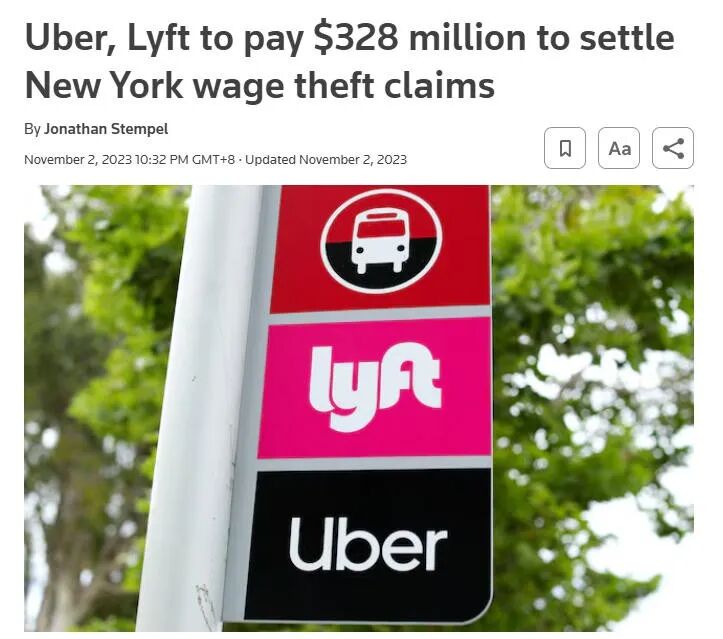 长话短说,最后的结果是,Uber和Lyft在纽约赔了3.28亿美元的天价和解金,其中Uber赔了大部分,为2.9亿。