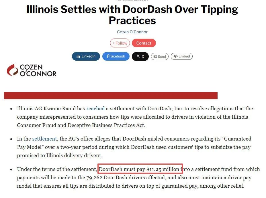 到2024年,DoorDash又在伊利诺伊州赔了1125万美元。