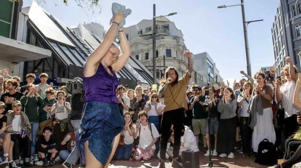 比如去年4月,在新西兰的惠灵顿,一位叫丹·博尔曼(Dan Boerman)的脱口秀演员在大街上表演叠床笠,吸引了大约1000人围观。