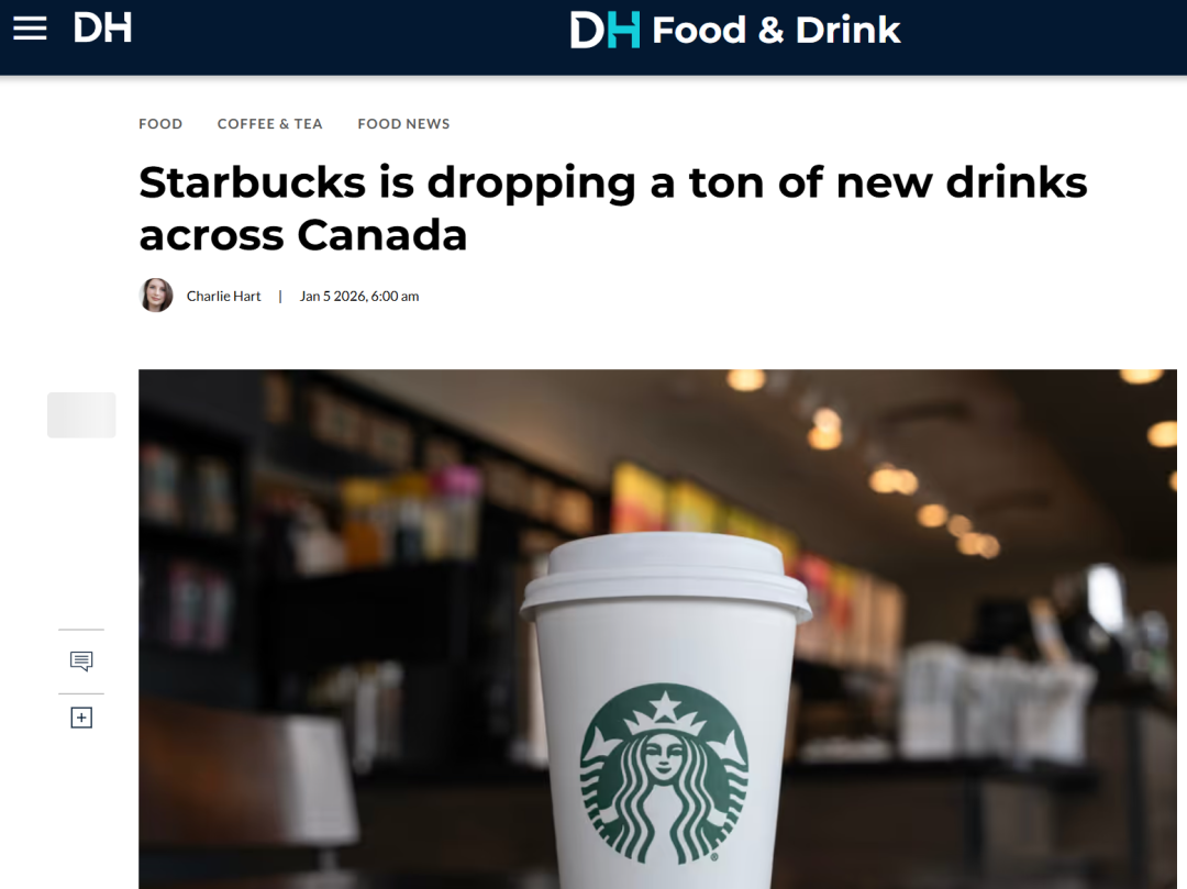 从1月6日起,加拿大各地的星巴克门店将推出新增菜单。