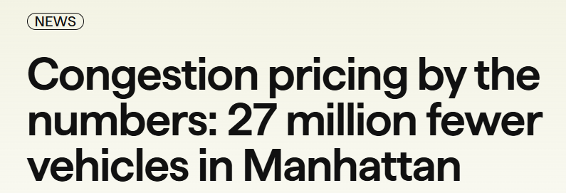 马姆达尼表示:“我们也要庆祝这项政策对纽约市居民的意义——无论他们是开车、骑车、步行,还是乘坐公交车或地铁,甚至只是在这座他们称之为家园的城市呼吸。因为无论从哪个维度衡量,这都是一项成功的计划。”