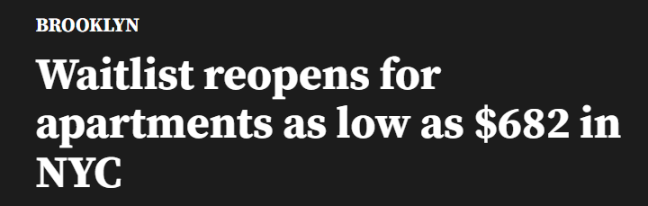 布鲁克林一项提供最低月租仅682美元的经适房抽签项目已重新开放候补名单。PIX11报道截图