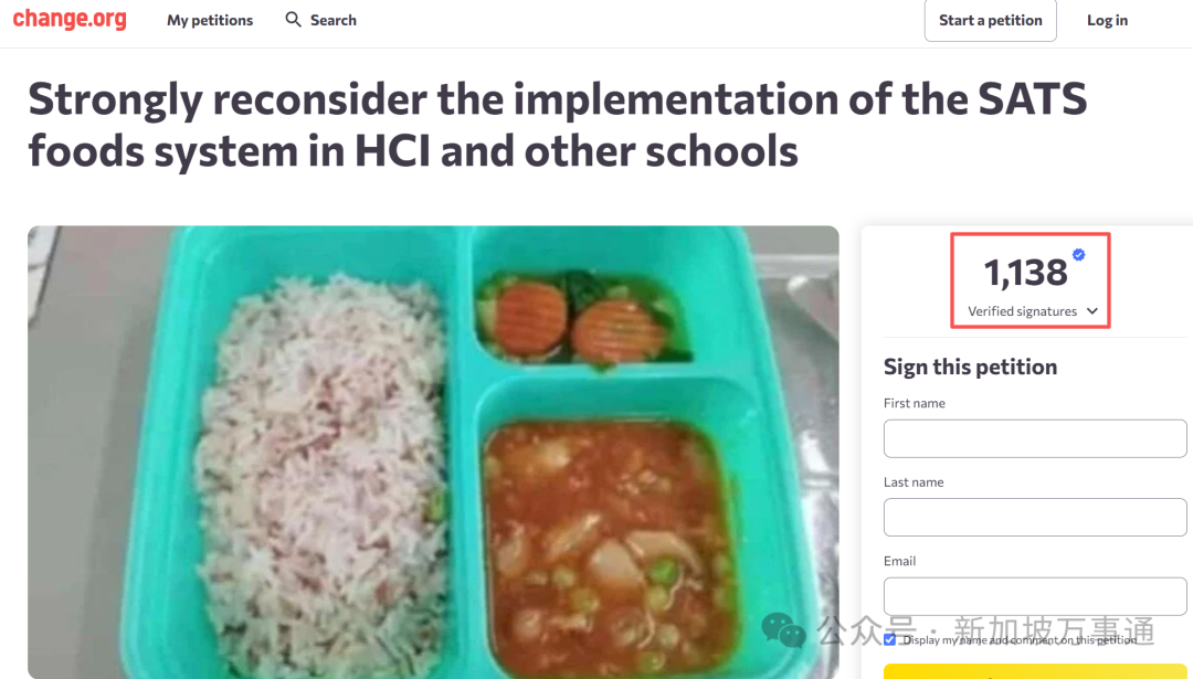新加坡联署网站上甚至出现了一份题为“强烈建议重新考虑在中学实施SATS餐食系统”的请愿书,截稿前已经有1138人请愿了。