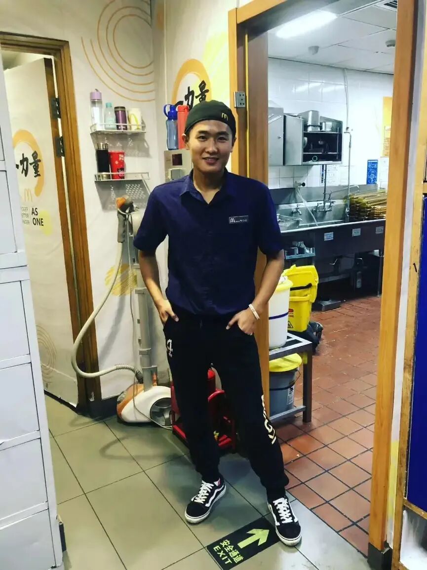 我爱打篮球,从初中就喜欢科比。一起打球的几个男生都有AJ系列球鞋,有的人詹姆斯、科比、乔丹的球衣球鞋,天天换着穿。我穿安踏,球衣假的,几十块一件。我挺羡慕的,就去麦当劳兼职,每小时13块钱,半年后花900块钱,加上平台的新人券买了双最便宜的科比1代,白色。