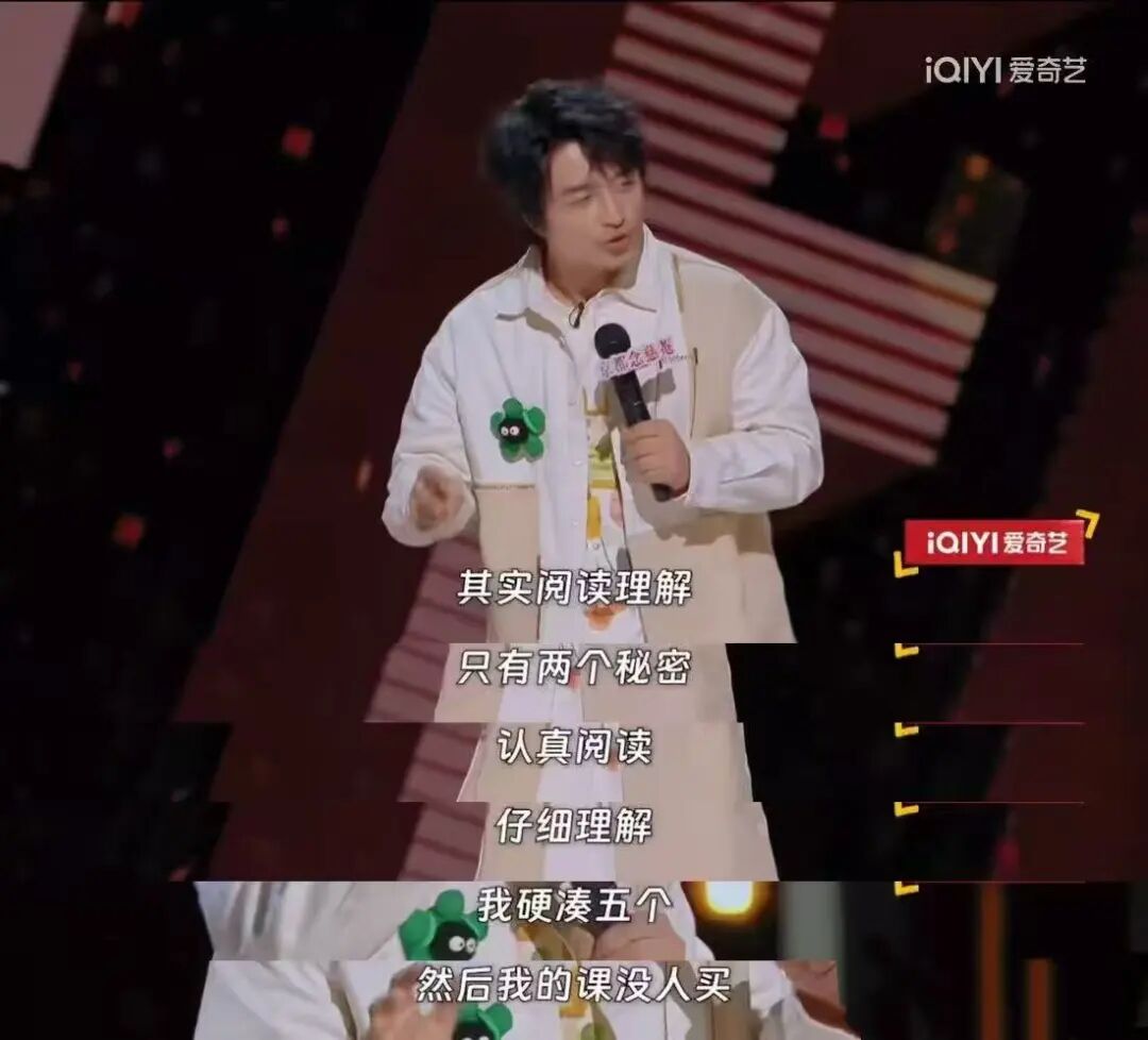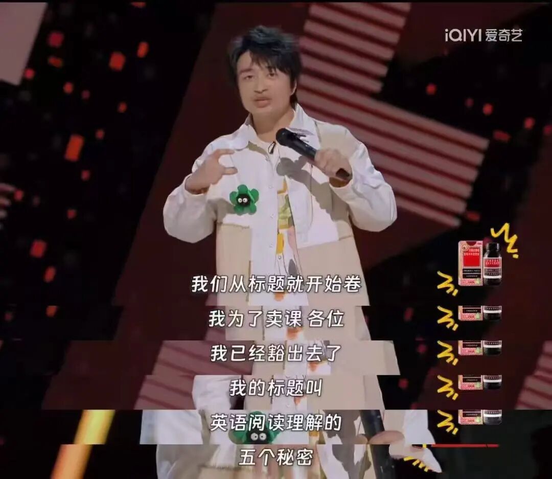 曾经是新东方英语老师的脱口秀演员刘旸在他的表演中生动讲述了“营销是卖课的精髓”:一门阅读理解的课,销冠的课程标题是“阅读理解,再也不需要阅读”,简直倒反天罡。