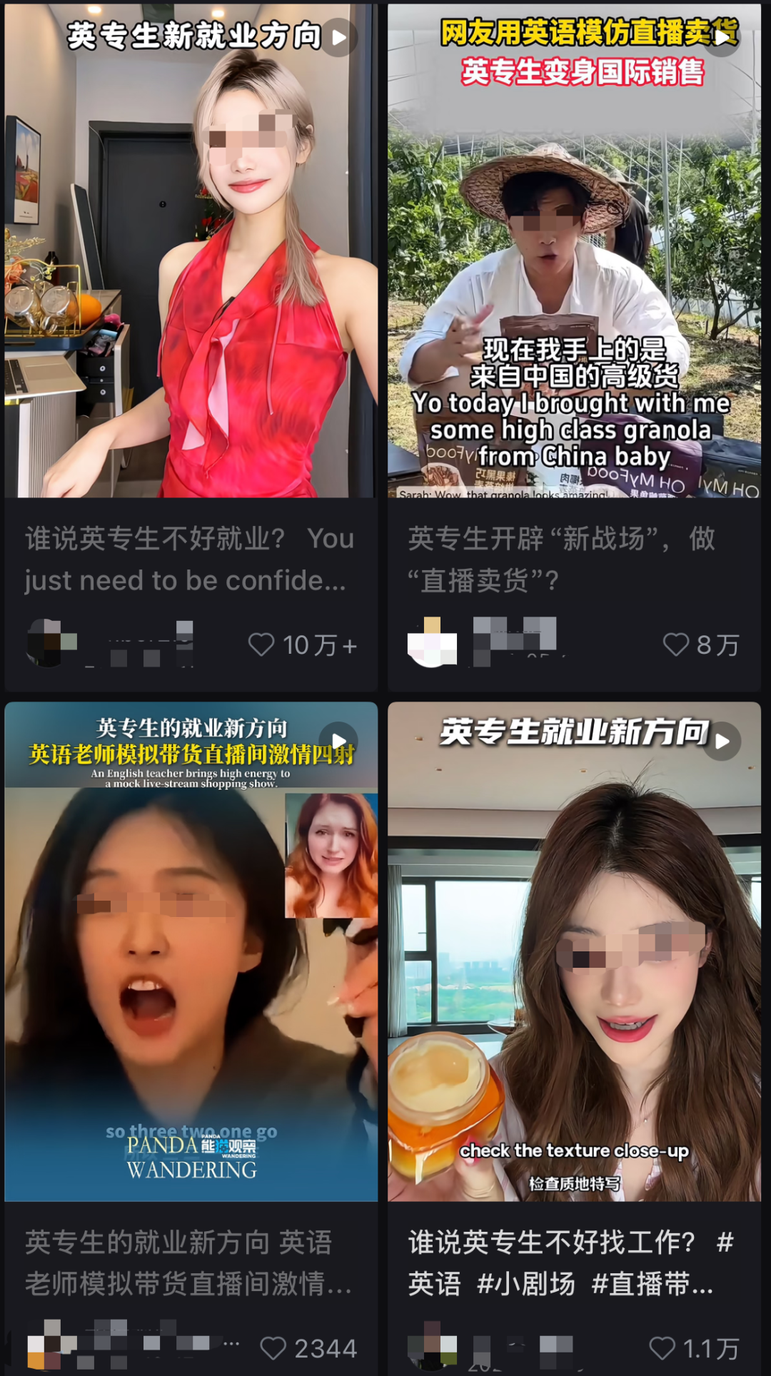 近几年在抖音、小红书、TikTok上,不难看到英专背景的博主尝试海外直播带货,当年在学校里做pre的经验也有了用武之地,他们口语流利、表达自然,自信地面向镜头,在国际市场开疆拓土。