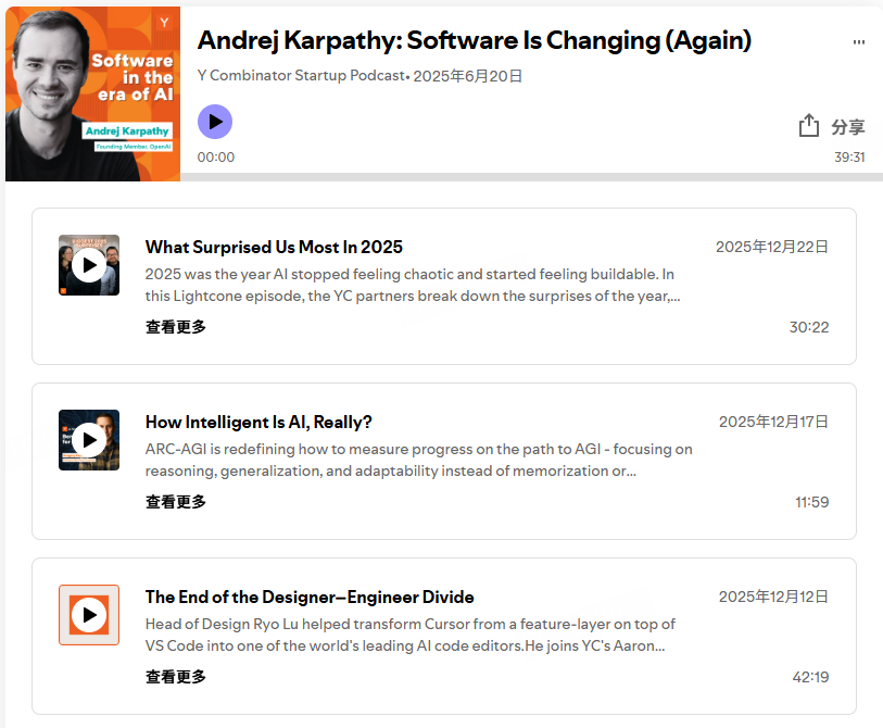 你还可以直接收听曾任职于OpenAI的Andrej Karpathy在spotify上的栏目,你就会了解更多人工智能将为音乐、媒体和日常应用带来哪些飞跃、建造太空中的人工智能数据中心将为人类提供多少可能性……掌握英语,就等于握住了打开世界的钥匙/[25]