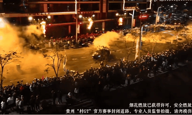 闹市区内,“村GT”在赛道两旁提供了足够多的观众区,还在核心赛道边上插了火把,放了烟花,能忍住不出门看的,基本可以确诊为植物人了。