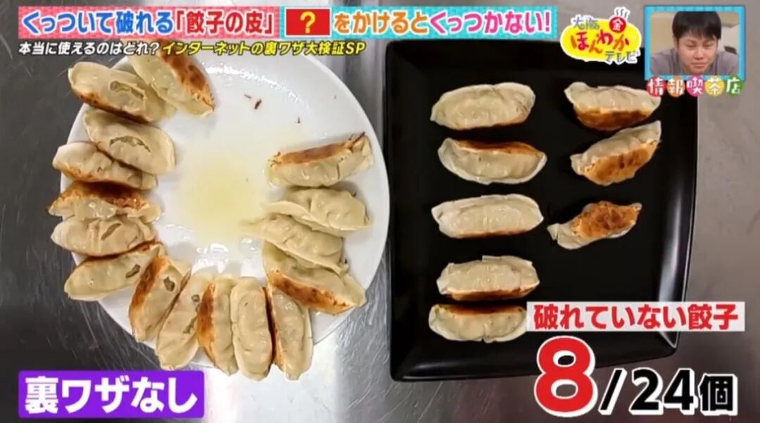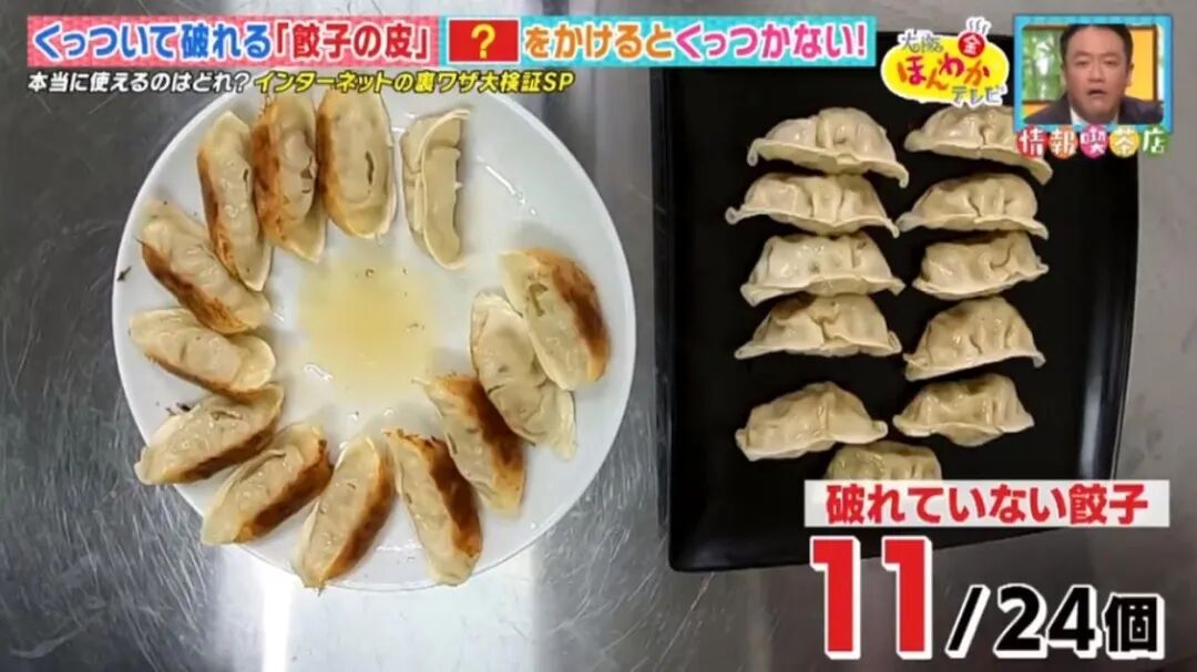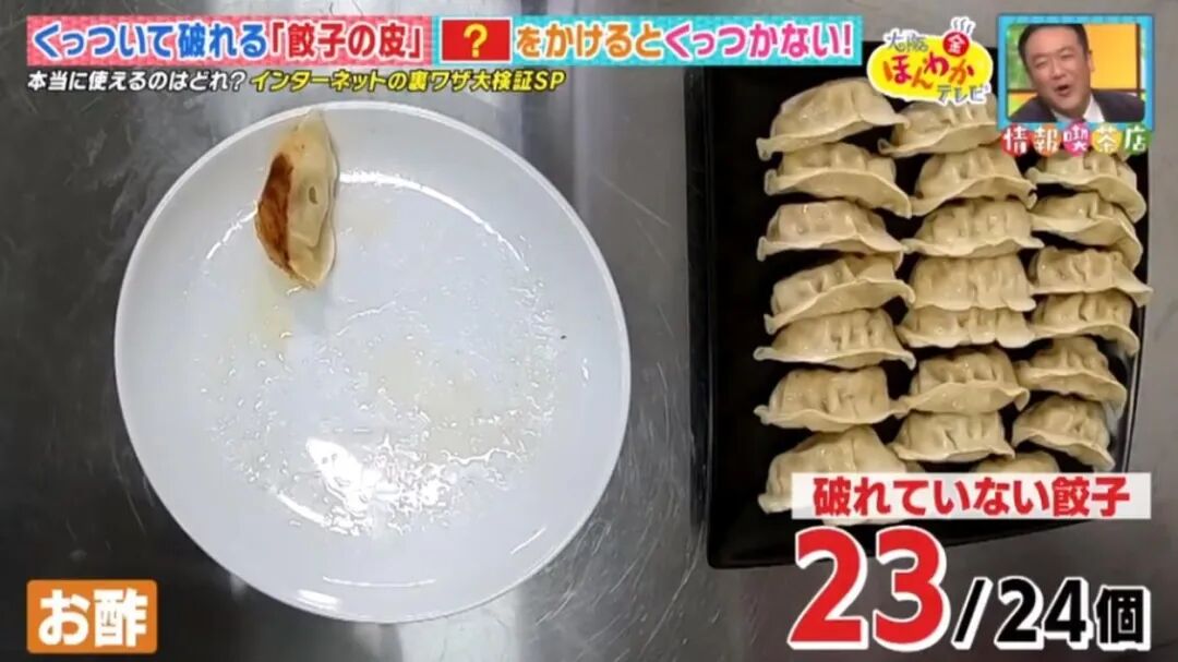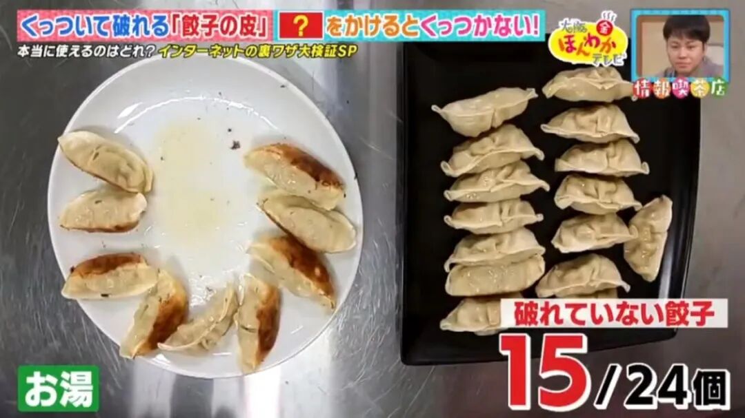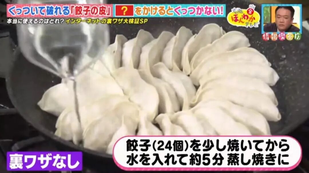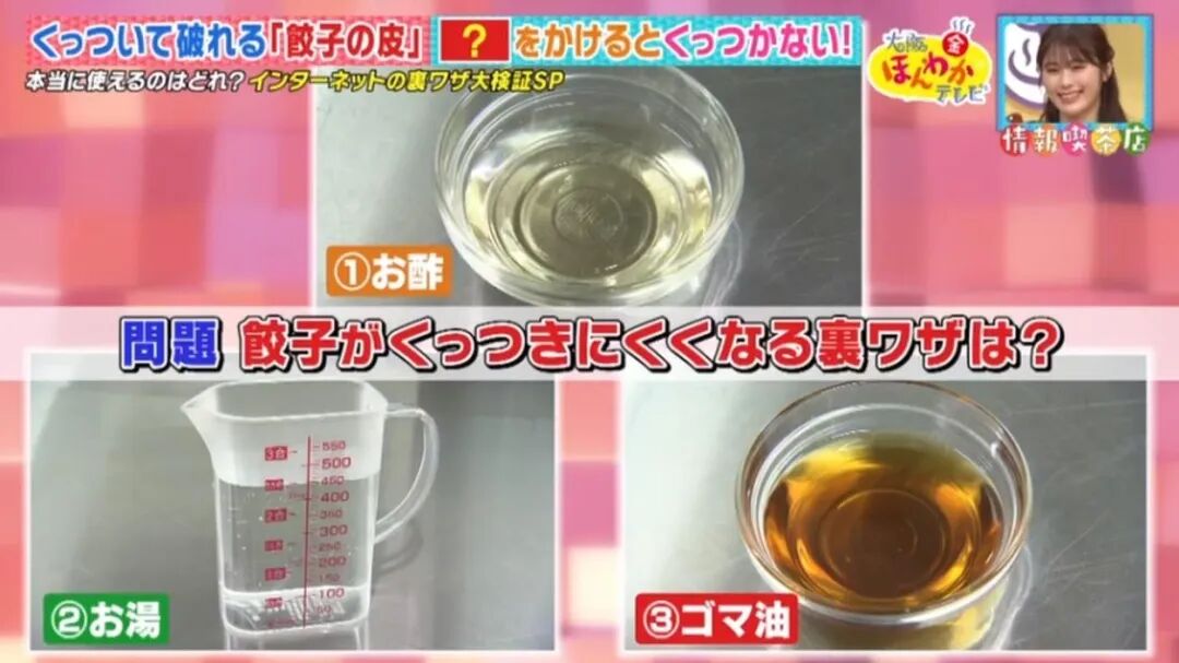 最近,日本节目实验了 3 种网上流传的煎饺小窍门:在煎饺时,加入热水、麻油或醋。