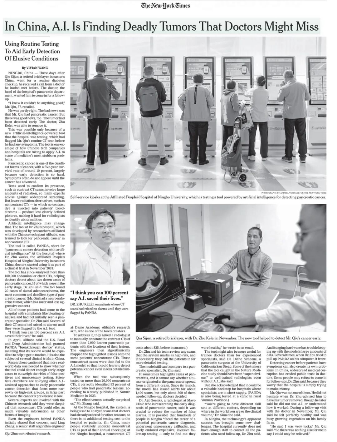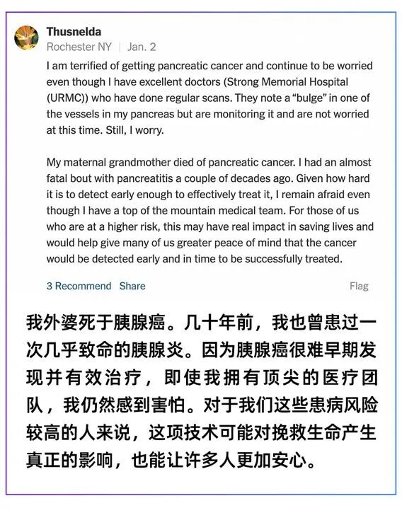 翻译来自中文媒体报道《纽约时报》报道中国AI查胰腺癌花25美元,美国网友吐槽:在美不够停车费
