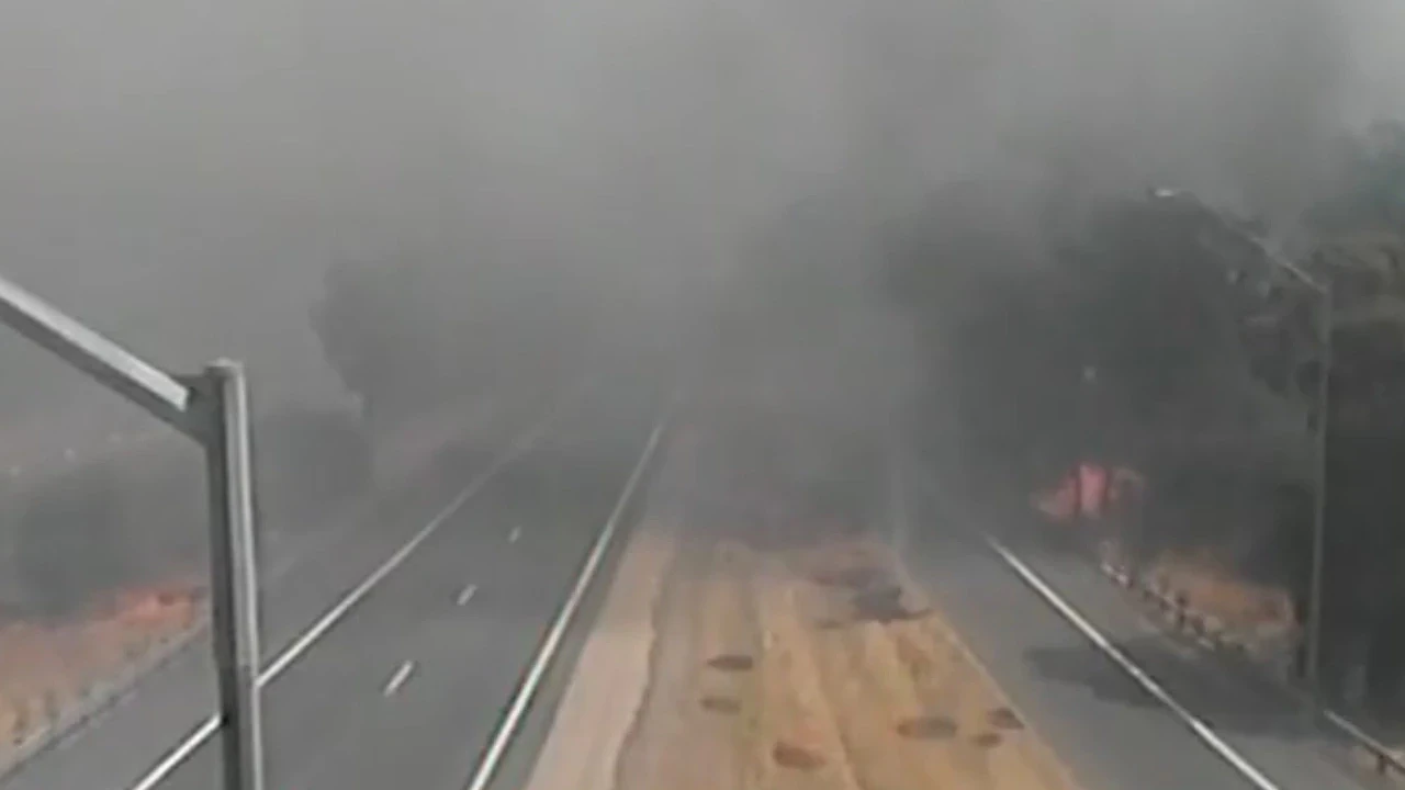 消防员在珀斯东部扑救一场威胁生命和家园的 fire 时,Roe Highway 双向关闭。图:Main Roads WA