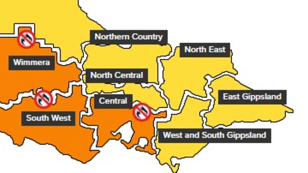 当局已向维州的 Wimmera、South West 和 Central 地区发布极端火灾警报和全面禁火令。图:CFA