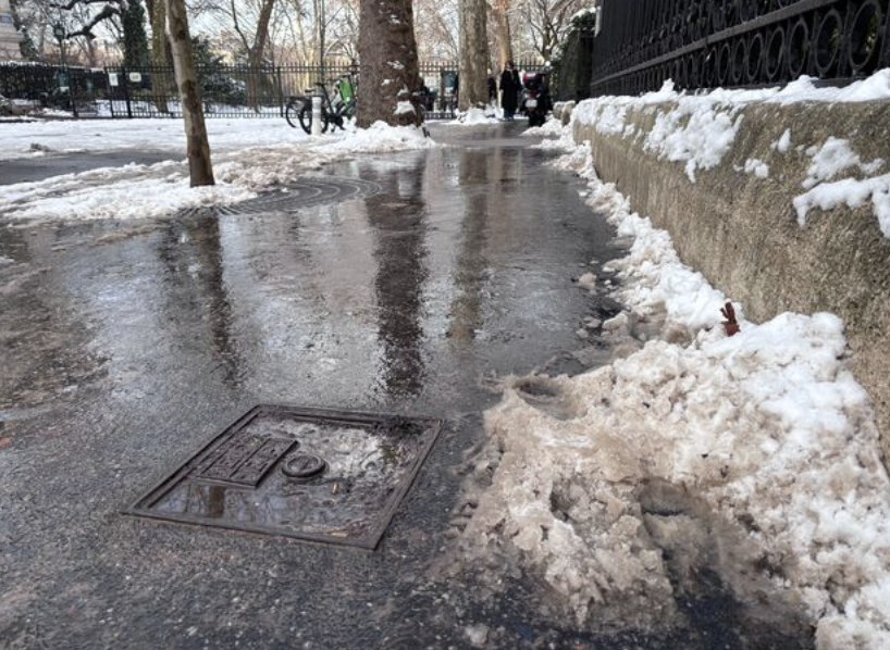 他说:“中午经过那段人行道时,我听到‘啪’的一声,还以为是冰被踩裂了。”