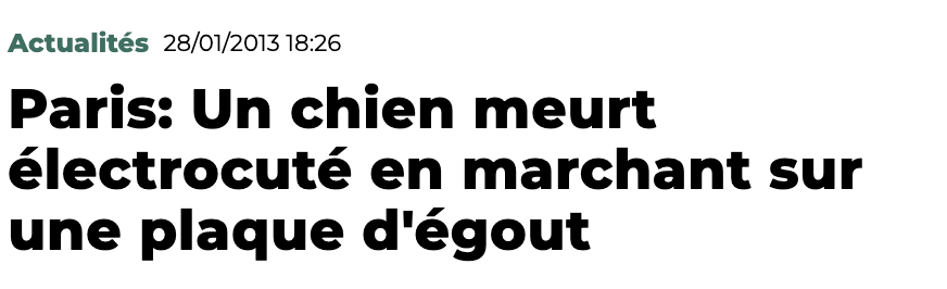 在2013年,巴黎第20区也曾发生过一只狗在踩到下水道盖板后被电死的事故。