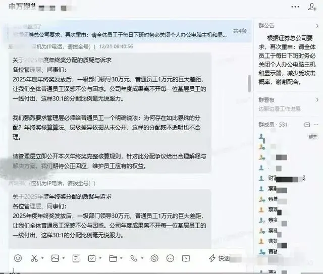 网传内容显示,2025年度年终奖发放后,公司内部出现“一级部门领导获30万元、普通员工仅1万元”的巨大差距,这一悬殊分配方案令全体员工深感不公与困惑。