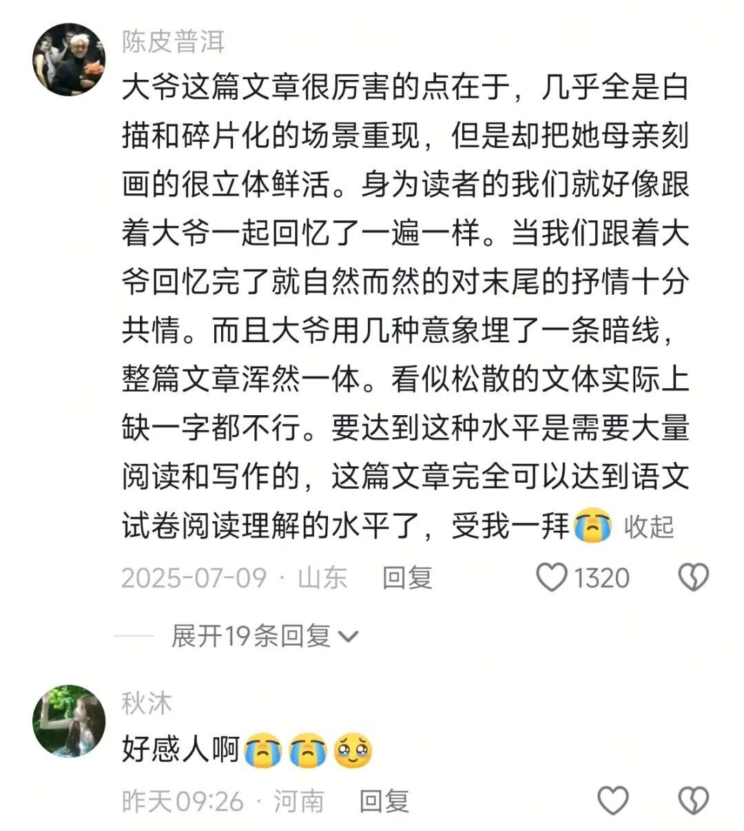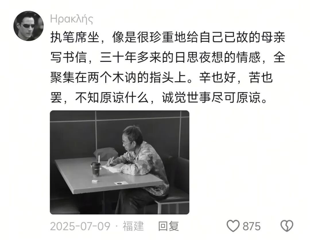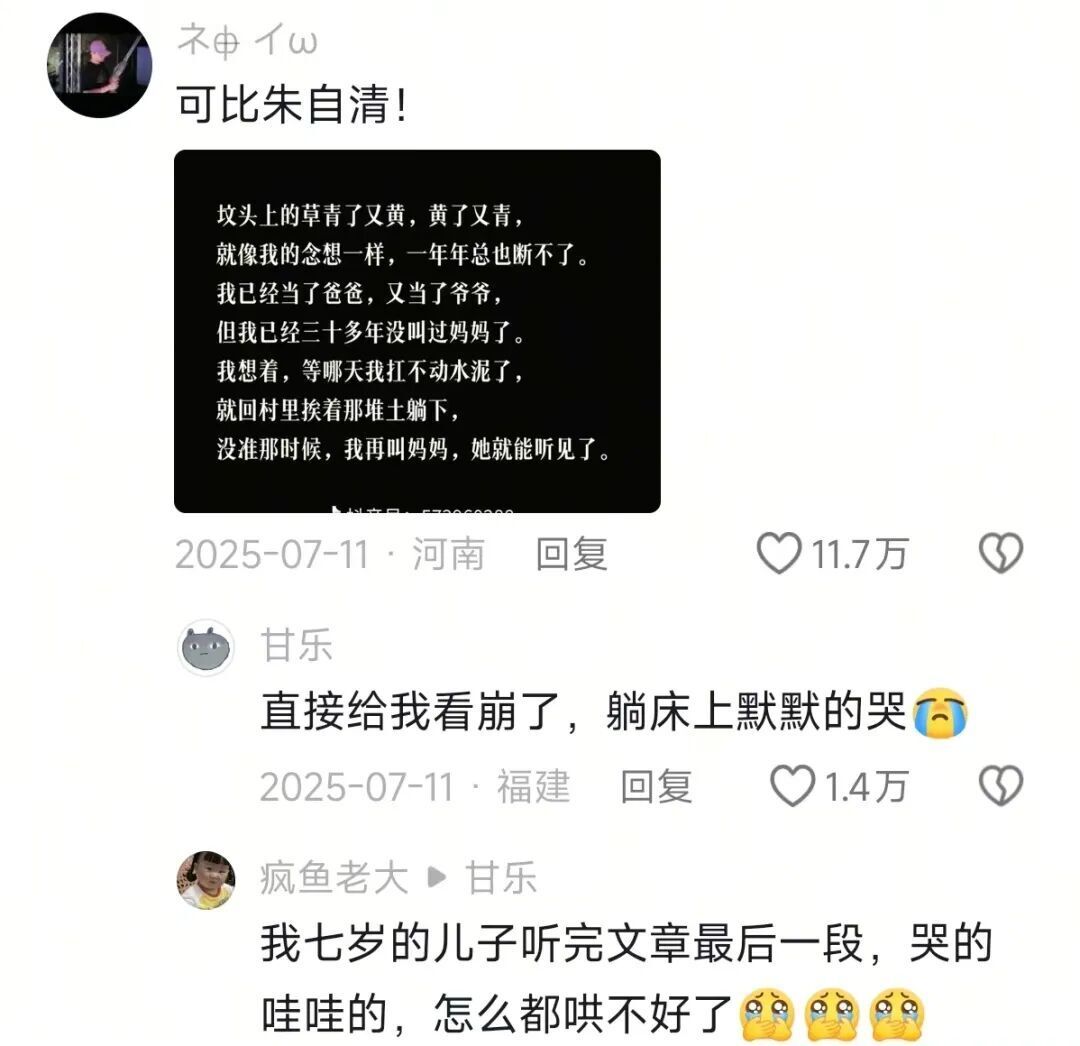 在安大爷的文章下,无数人写下自己未能说出口的思念。文本在无数陌生人的泪水中获得新生,每一次转发与评论,都是一次庄严的确认:你的感受,我懂。
