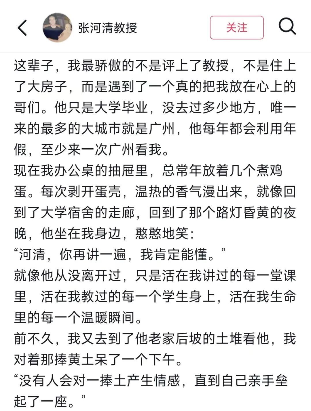 张河清教授那篇获得超千万共鸣的《悼友文》,是他站在湖南邵阳后坡的黄土堆前,心有所感,心有所思,心有所念。