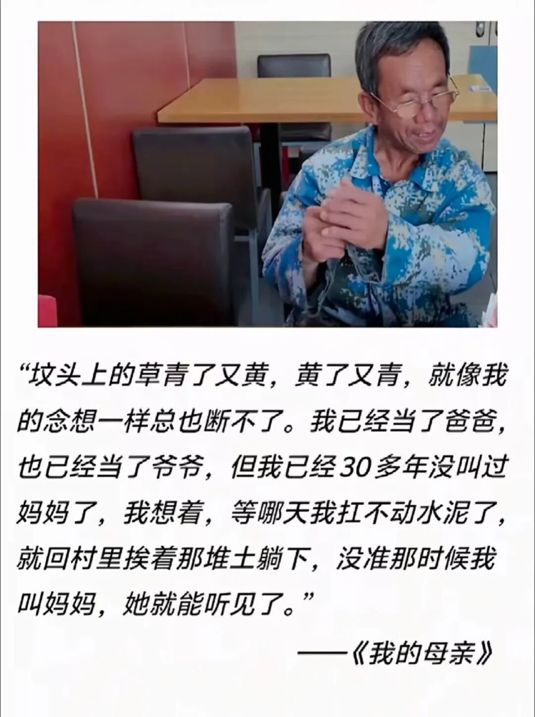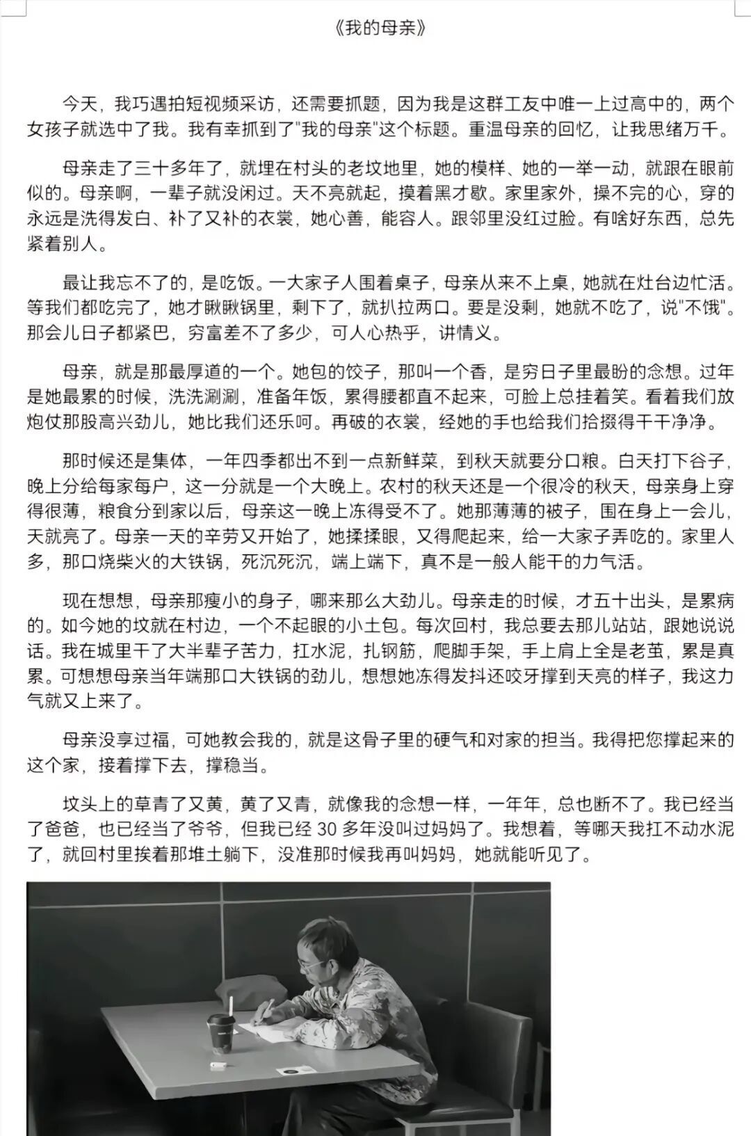 倘若时间倒流十年,我们很难想象,一篇让千万人泪崩的故事,其诞生地不是文学杂志的编辑部,而是在短视频上;一篇被赞为“媲美朱自清”的《我的母亲》,其创作现场不是书房,而是太原火车站,酷晒炎热的劳务市场。