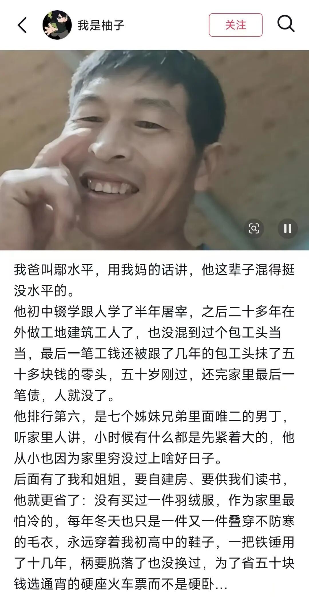 他开头略带调侃:“我爸叫鄢水平,用我妈的话讲,他这辈子混得挺没水平的。”