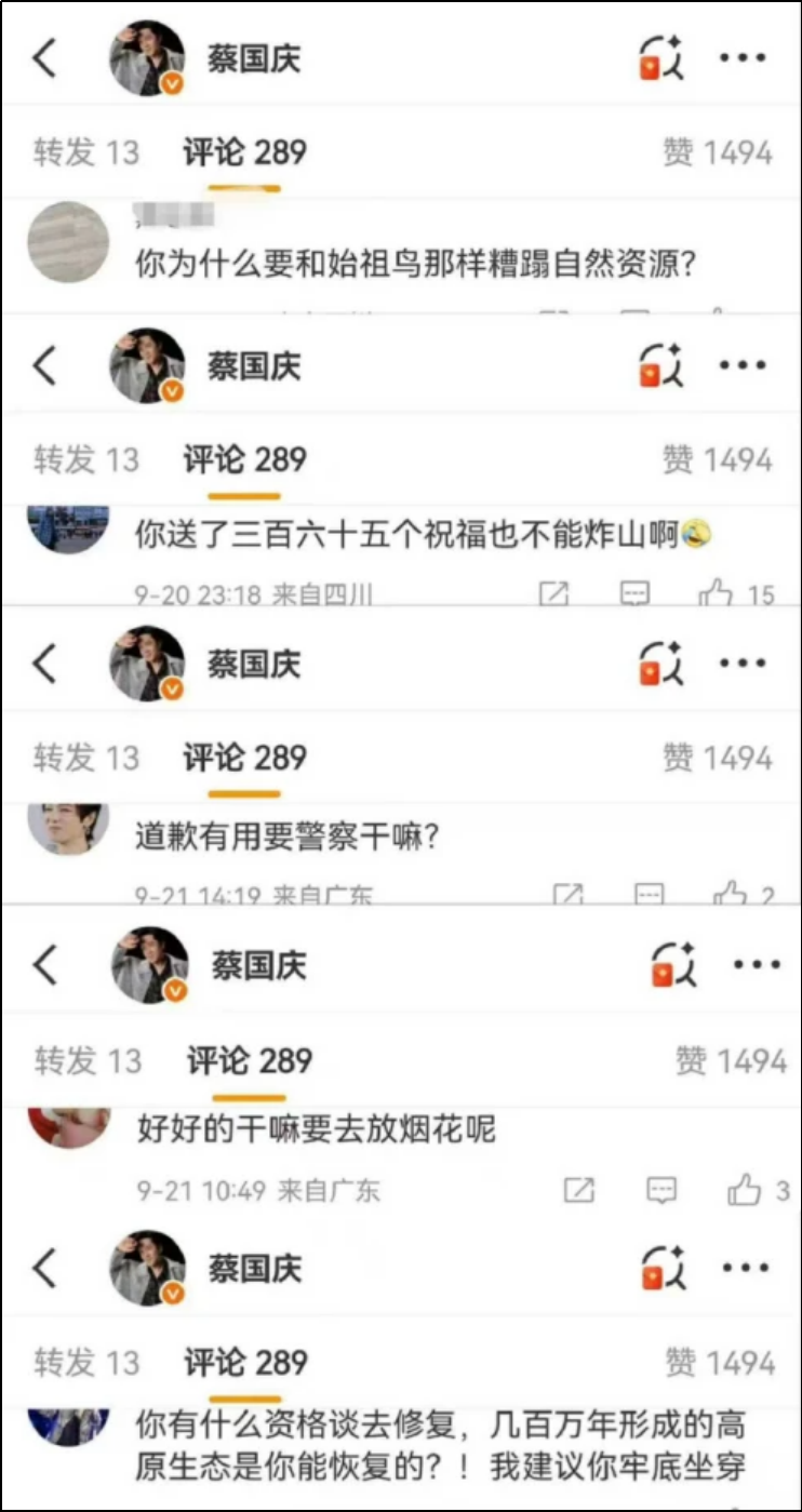 结果一些网友去歌手蔡国庆账号下肆意批评。
