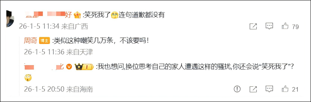 马上,网友的前半句“笑死我了”,后半句“连句道歉都没有”,足够表明为大叔着想了吧。