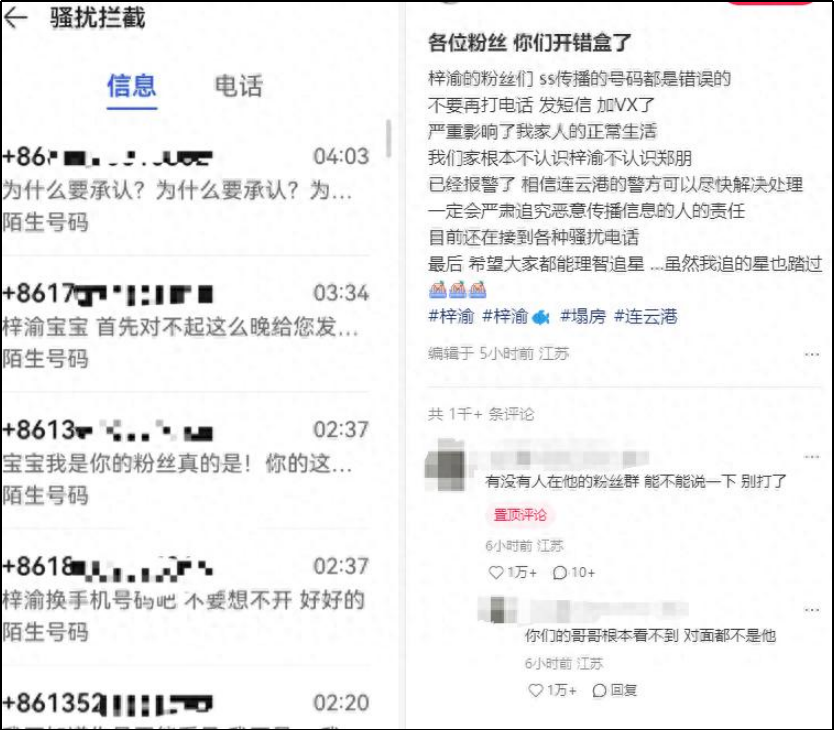 结果有粉丝错把素人号码当做了某星的,给这个号码信息轰炸。