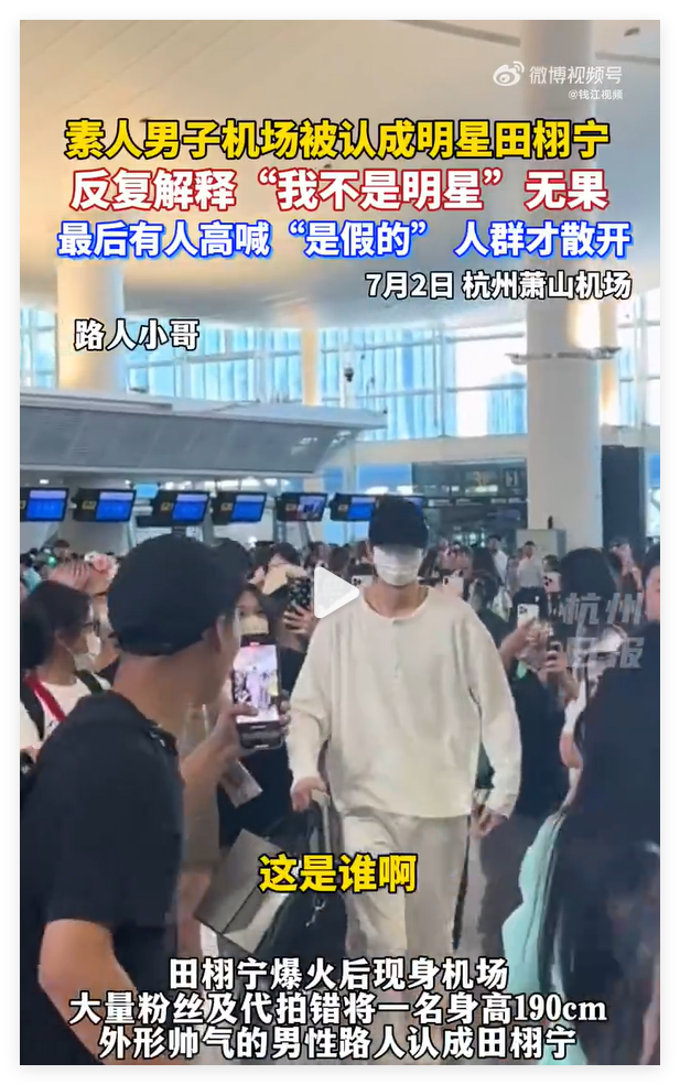 有粉丝在机场把素人错认成某星,一直追着他,他怎么解释都无效。