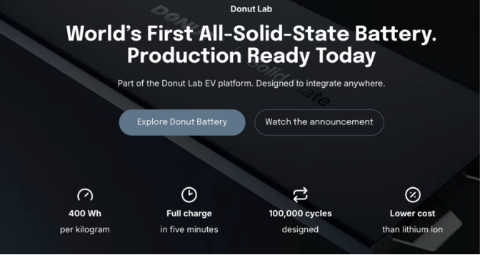 燃油车的“末日”,就这么来了?前不久,在2026年CES(消费电子展)上,一家来自芬兰的初创公司Donut Lab,推出了号称“全球首款可量产的全固态电池”,预计将于2026年1月开始交付。